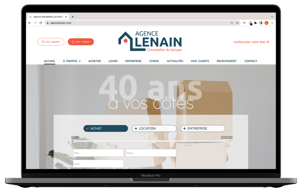 Ce site internet permet à l’agence Lenain de digitaliser ses services en proposant des biens en vente ou en location, accessibles partout, tout le temps.